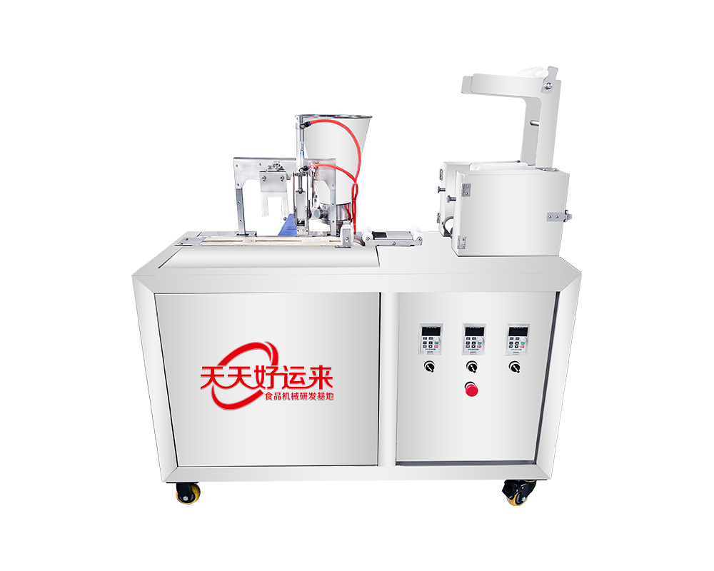 150餛飩機 ,是將壓好的面餅放在機器輸送架上,即可搟皮-注餡-包合-送合-人工整形??捎唵紊a(chǎn)10克-30克的餛飩(下單前要注明需用多重的餛飩給客服人員),本系列機型產(chǎn)品多樣更換不同磨具可生產(chǎn)不同的花形:如餛飩、餃子、蒸餡、鍋貼等。