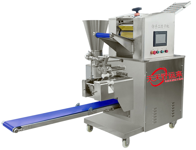制作好面坯和拌好的餡料放入機(jī)器的餡斗和面斗,通過(guò)手柄可以調(diào)節(jié)皮的厚薄,餡泵調(diào)節(jié)餡料多少,將面和餡傳送至成型模即可出餃子。優(yōu)勢(shì):1.采用壓輥壓制成面皮0.4MM-3MM厚度可調(diào)、加水量大(高達(dá)48%),面筋沒(méi)有任何破壞,面皮富有彈性、口感好、有嚼勁,與手工水餃媲美。2.仿手工餃子機(jī)制作面皮經(jīng)過(guò)制成筒狀后,在注餡,廢皮可以回收利用,不存在浪費(fèi)。3.仿手工餃子機(jī)效率高,節(jié)約勞力80%以上,只需一人即可操作。4.本機(jī)壓面、制皮、注餡、成型于一體,自動(dòng)化程度高,結(jié)構(gòu)緊湊,設(shè)備的維護(hù)、清洗方面簡(jiǎn)單。