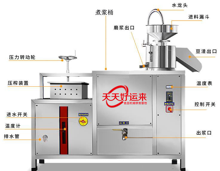 我公司生產(chǎn)即食豆?jié){、豆腐機(jī)在國(guó)內(nèi)是較早的企業(yè),多年來通過對(duì)設(shè)備的不斷改進(jìn),利用現(xiàn)代科技與傳統(tǒng)工藝的完美結(jié)合。使設(shè)備外觀設(shè)計(jì)美觀、時(shí)尚,操作簡(jiǎn)單,主要有磨漿機(jī)、煮漿桶、蒸氣機(jī)、成型機(jī)等組成。機(jī)器采用不銹鋼制造,干凈衛(wèi)生,技術(shù)領(lǐng)先,質(zhì)量可靠,經(jīng)久耐用。實(shí)現(xiàn)了生產(chǎn)過程自動(dòng)化,具有高效、省時(shí)、耗能低、占地小、無污染等優(yōu)點(diǎn)。而且采用先進(jìn)磨漿技術(shù),瞬間加熱工藝,保證了蛋白質(zhì)不受破壞,從而使生產(chǎn)出來的豆制品營(yíng)養(yǎng)更豐富,味道更鮮美。工藝流程: 將浸泡好的黃豆由高速分離磨漿機(jī)加工,排出豆渣,產(chǎn)出的豆?jié){經(jīng)過蒸汽加熱達(dá)到去腥,并煮漿均質(zhì),并添加輔助原料消泡、凝固劑(如鹵水、石膏、內(nèi)脂、酸漿等)、成型和深加工處理便可產(chǎn)生出營(yíng)養(yǎng)豐富的豆制品如:豆?jié){、豆腐腦、豆腐、豆桿、豆皮、素雞、豆泡等制品,適用于賓館、超市、飯店、學(xué)校、企業(yè)食堂、工程店及食品廠等。