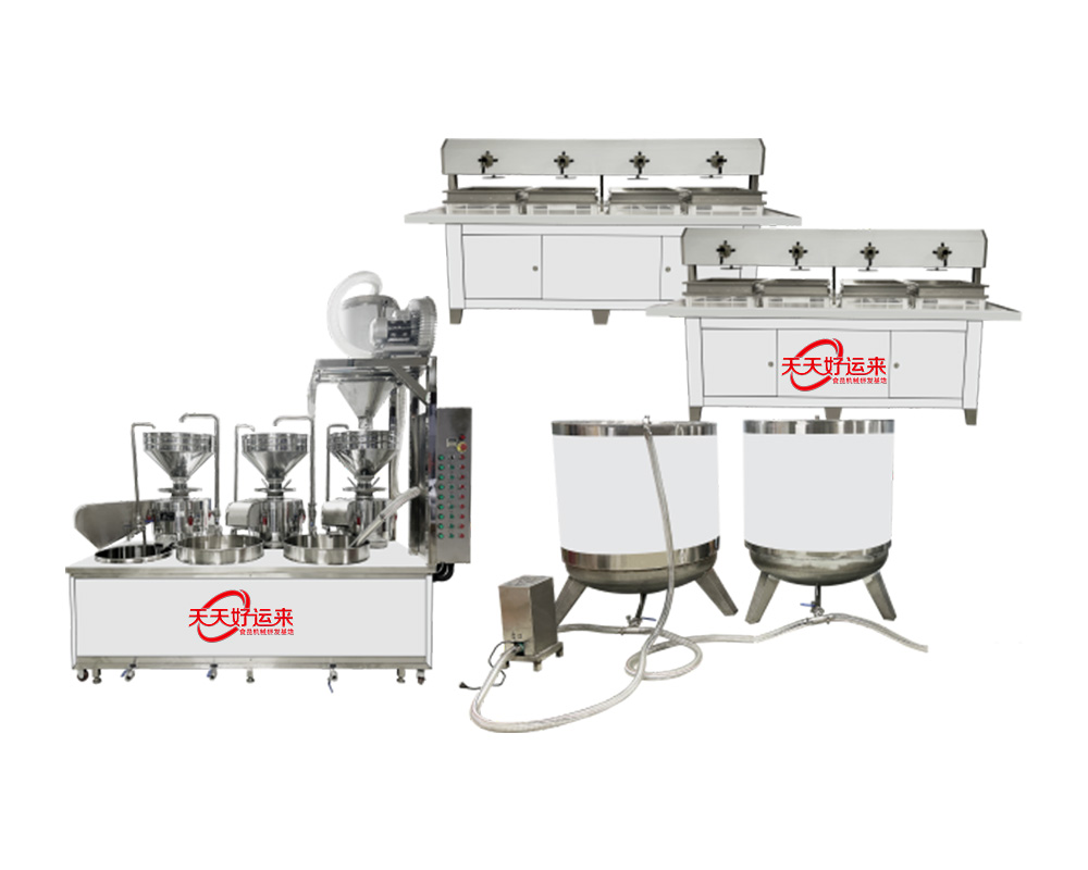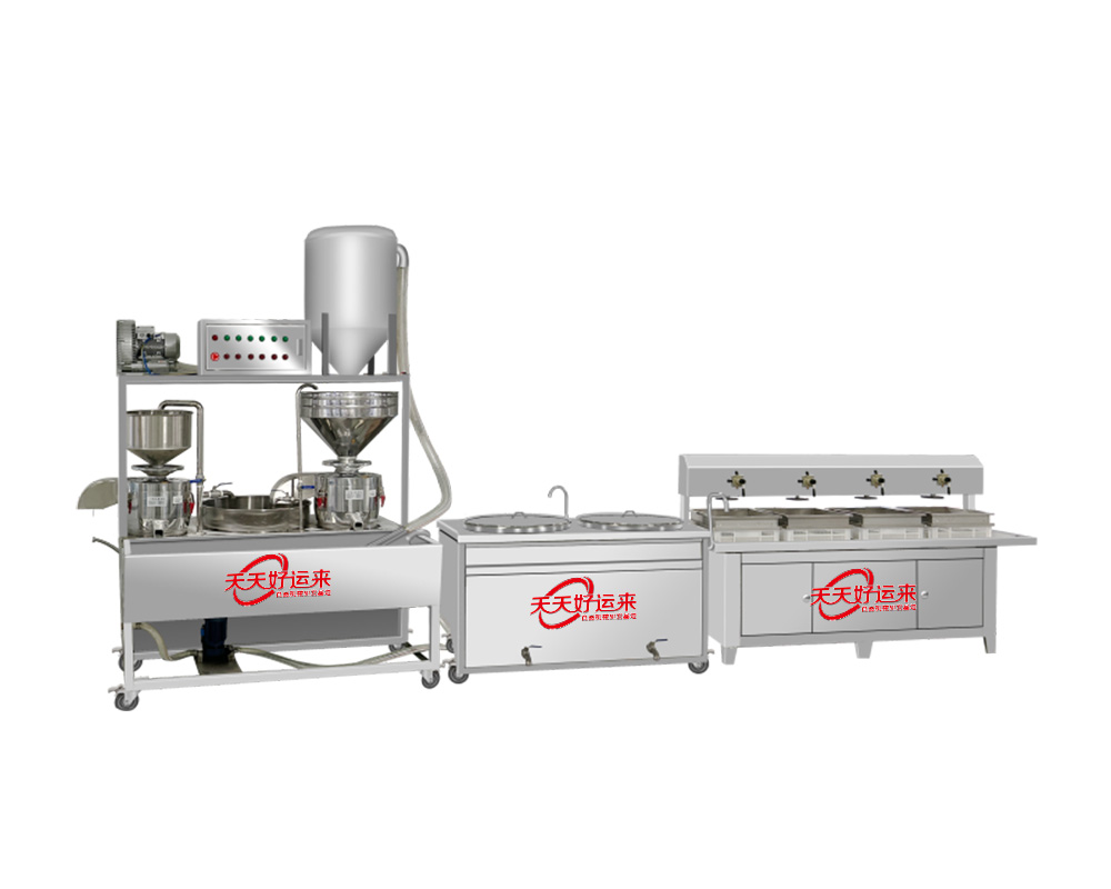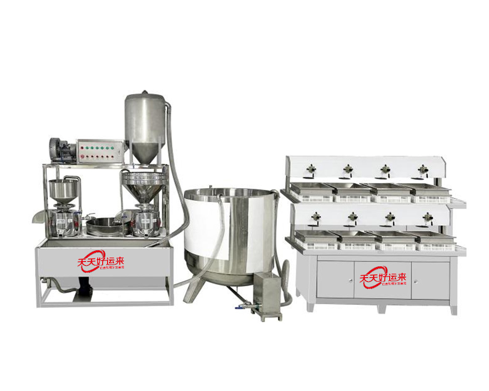 我公司生產(chǎn)豆腐機(jī)在國(guó)內(nèi)是較早的企業(yè),多年來(lái)通過對(duì)設(shè)備的不斷改進(jìn),利用現(xiàn)代科技與傳統(tǒng)工藝的完美結(jié)合。使設(shè)備外觀設(shè)計(jì)美觀、智能化高,操作簡(jiǎn)單,主要有自動(dòng)上豆系統(tǒng)、磨漿機(jī)系統(tǒng)、拌渣提升系統(tǒng)、煮漿桶(蒸氣機(jī)用戶自備)、成型機(jī)等組成。機(jī)器采用不銹鋼制造,干凈衛(wèi)生,技術(shù)領(lǐng)先,質(zhì)量可靠,經(jīng)久耐用。實(shí)現(xiàn)了批量生產(chǎn)過程自動(dòng)化,具有高效、省時(shí)、耗能低等優(yōu)點(diǎn)。采用先進(jìn)空真上豆技術(shù)和連續(xù)磨漿技術(shù),瞬間加熱工藝,保證了蛋白質(zhì)不受破壞,從而使生產(chǎn)出來(lái)的豆制品營(yíng)養(yǎng)更豐富,味道更鮮美。工藝流程: 將浸泡好的黃豆由高速分離磨漿機(jī)加工,排出豆渣,產(chǎn)出的豆?jié){經(jīng)過蒸汽加熱達(dá)到去腥,并煮漿均質(zhì),并添加輔助原料消泡、凝固劑(如鹵水、石膏、內(nèi)脂、酸漿等)、成型和深加工處理便可產(chǎn)生出營(yíng)養(yǎng)豐富的豆制品如:豆?jié){、豆腐腦、豆腐、豆干、豆皮、素雞、豆泡等制品,適用于大型賓館、超市、企業(yè)食堂、工程店及食品廠批量加工使用。