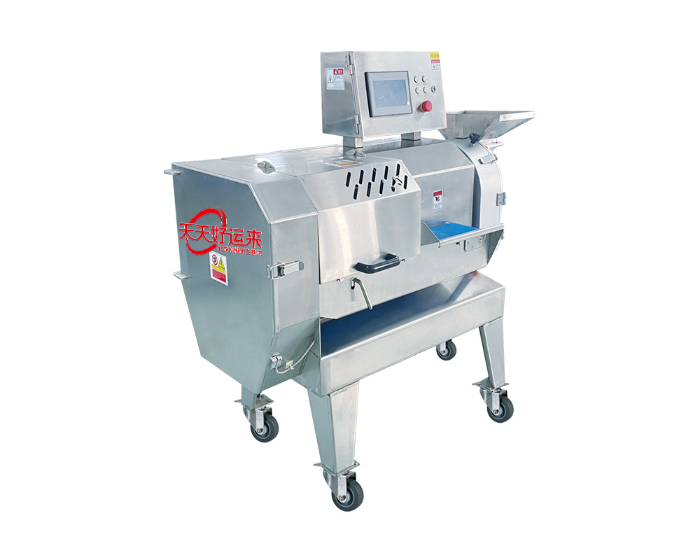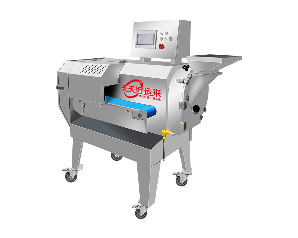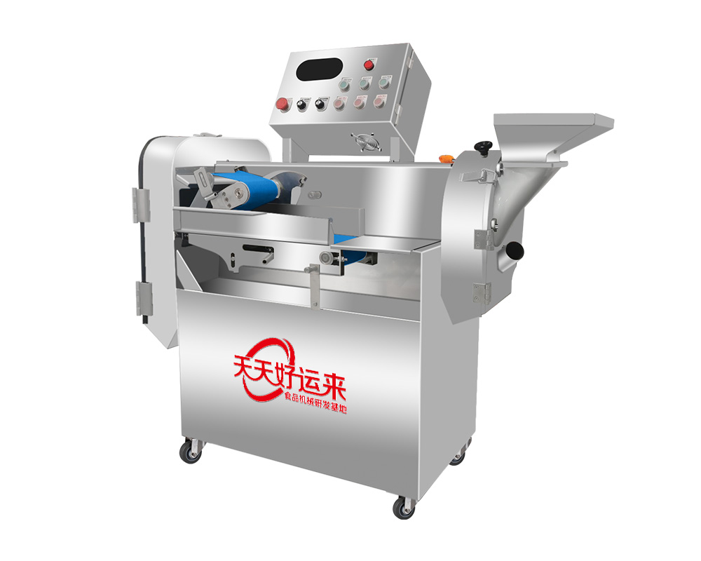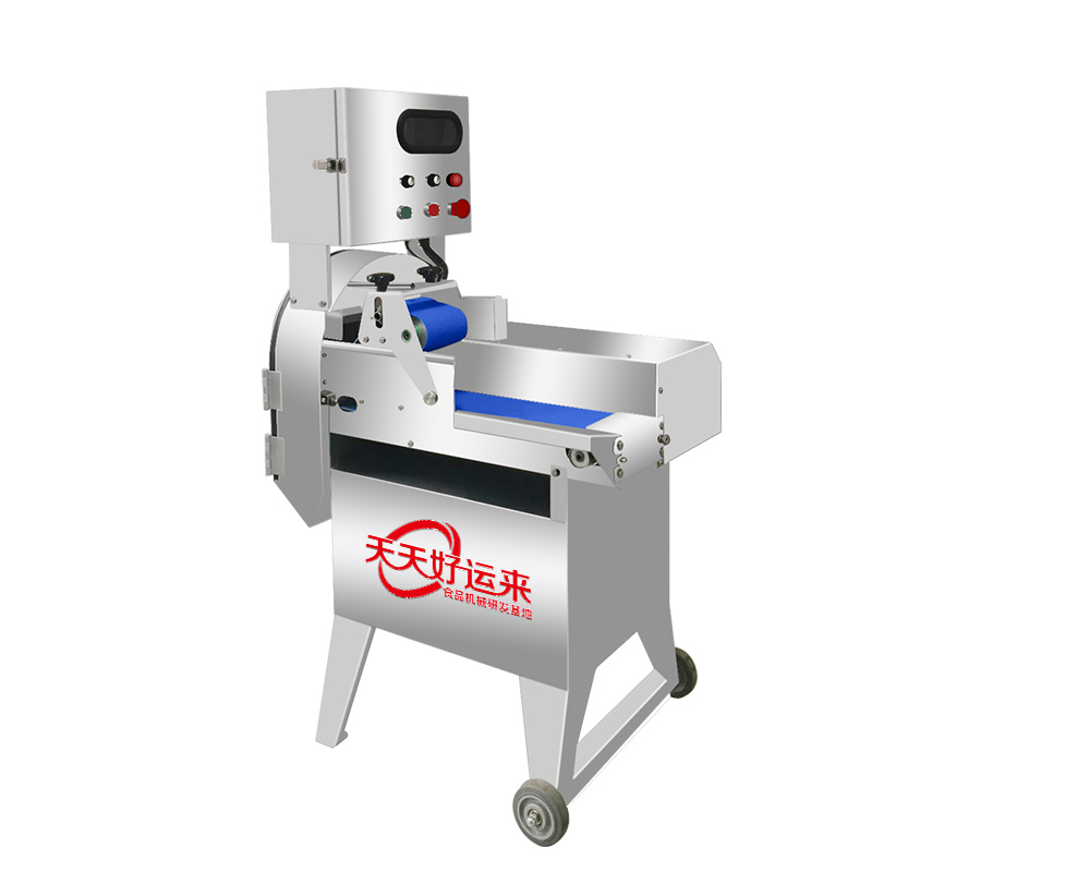 本設備幾乎可切任何瓜果蔬菜,如:切片、絲、丁,末、段等;具備雙調(diào)頻功能,一頭是切葉菜類,如長蔥,蒜苗,韭菜,芹菜,白菜,青菜等等,一頭是切球根莖類,如蘿卜,土豆,紅薯,芋頭,筍,洋蔥,茄子,蘋果,生姜等等眾多瓜果類蔬菜。葉菜類的輸送帶速度和轉(zhuǎn)刀速度采用PLC數(shù)控屏操作,均可獨立控制,葉菜切割規(guī)格:1~50mm可調(diào)。切部份根莖類;根徑部份刀盤范圍:片:2-10MM,絲:2-6MM,?。?MM、10MM、12MM、15MM、20MM選一;一機多用,功能強大,產(chǎn)量高,操作簡單,皮帶可快速拆卸,并可水槍沖洗,清洗方便。
