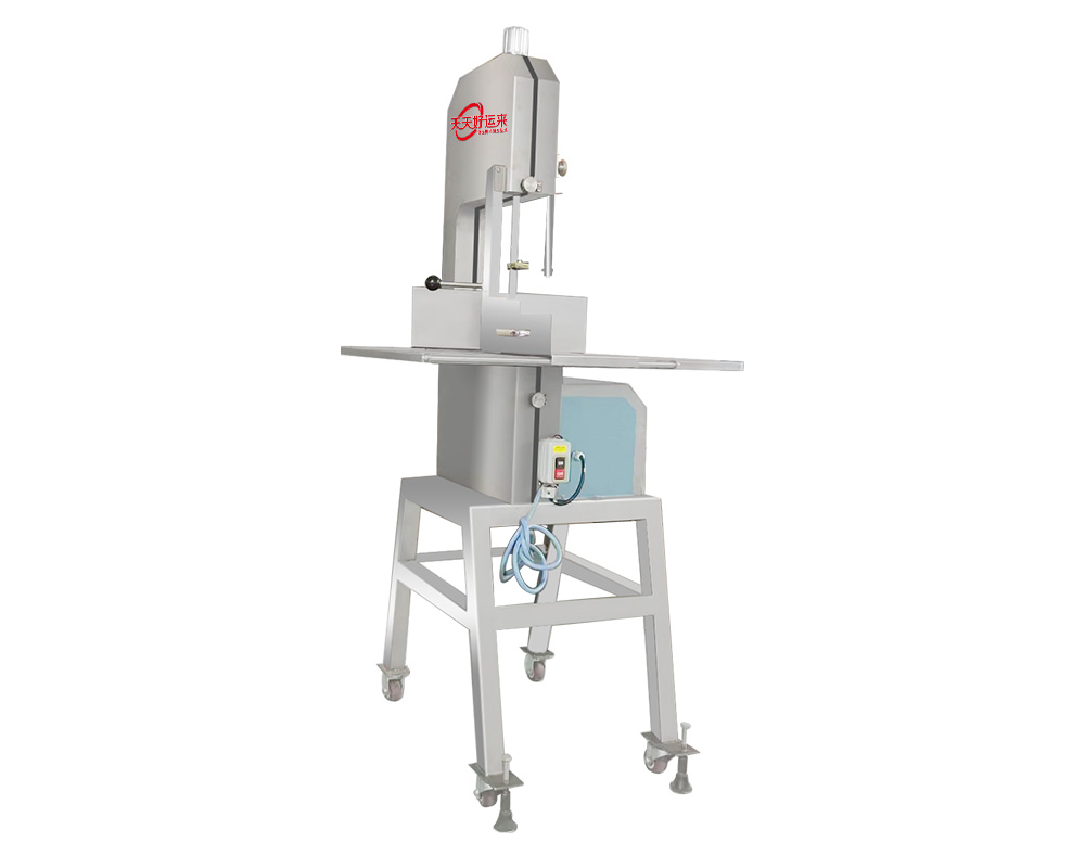 平面式機(jī)身設(shè)計, 不銹鋼封板, 符合食品衛(wèi)生并易于清洗;不銹剛機(jī)門, 表面特殊處理, 容易清理及保養(yǎng);鋸帶壓力張緊裝置, 便于鋸帶安裝及調(diào)整;鋸帶穩(wěn)定裝置, 鋸切時鋸帶穩(wěn)定不會游走 .厚度調(diào)整板加強(qiáng)設(shè)計, 便于調(diào)節(jié)加工厚度, 移動時不會搖動. 適用適用于各類中小型動物骨頭、冷凍肉,帶魚骨,冷凍魚,冰塊的加工等。用于小塊凍肉、排骨的切割。適用于大型集中式食品加工廠、屠宰場、肉聯(lián)加等地使用。